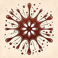Een gestileerde spetter van rijke, donkere chocolade vormt een boeiend, symmetrisch ontwerp dat doet denken aan een bloeiende bloem. Dit stuk roept gevoelens op van warmte, verwennerij en zoete verrukking.