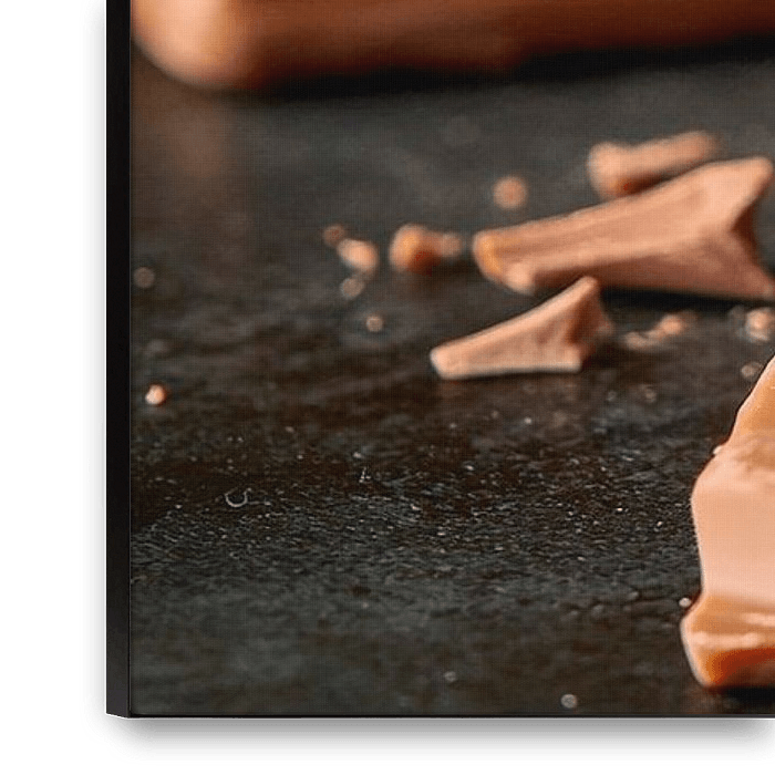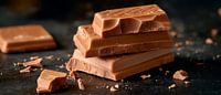 Een verleidelijk chocoladereepje dat meteen doet watertanden. Het glanzende oppervlak van de delicate repen en de verspreide fragmenten geven de afbeelding een aantrekkelijke textuur. Perfect voor de keuken, waar verwennerij en creativiteit elkaar ontmoeten - een duidelijke blikvanger voor iedereen met een zoetekauw!