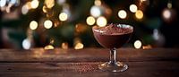 Een verleidelijk chocoladedessert in een elegant glas, omringd door zachte, glinsterende lichtjes die een feestelijke sfeer oproepen. De rijke, pure chocolade belooft verwennerij en gezelligheid. Dit beeld is perfect voor de keuken of de woonkamer, waar het de zintuigen stimuleert en de geest verheft.