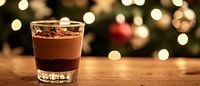 Een verleidelijk dessert in elegante laagjes wordt gepresenteerd in een stijlvol glas, overgoten met een snufje chocolade. In de zachte gloed van kerstlichtjes ziet het er bijzonder uitnodigend en feestelijk uit. Perfect voor in de keuken of eetkamer, waar het de zintuigen prikkelt en kerstsfeer verspreidt. Ideaal voor gezellige avonden met vrienden en familie!