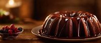 Een verleidelijk meesterwerk van chocoladeachtige verwennerij, geglazuurd in perfecte glans, trekt onmiddellijk ieders aandacht. Omringd door sappige bessen ontvouwt zich een sfeer van gezelligheid en smaak, ideaal voor de keuken of eethoek. Dit beeld wekt de verwachting van gezellige momenten vol zoetigheid en verwennerij.