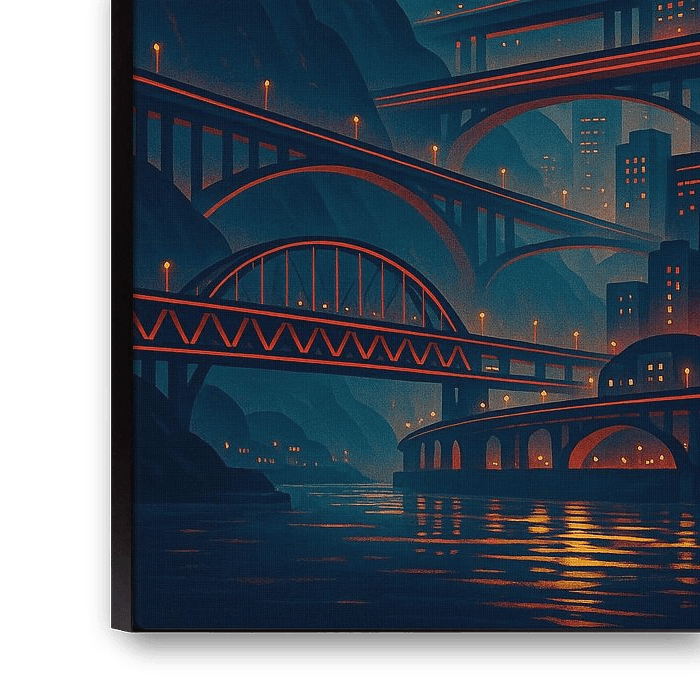 Perfect voor liefhebbers van dramatische stadsgezichten, nachtscènes of unieke architecturale omgevingen, voegt dit stuk diepte en intensiteit toe aan elke kamer. Het is ideaal voor moderne interieurs of expressieve wandruimtes en brengt de krachtige identiteit van Chongqing tot leven. Het is meer dan een stadsillustratie, het is een eerbetoon aan een van de meest buitengewone stadslandschappen ter wereld.