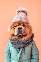Met een majestueuze vacht die doet denken aan de manen van een leeuw en een indrukwekkend, expressief gezicht straalt deze chow chow zowel waardigheid als stijl uit. Gehuld in een elegante vacht en een gezellige hoed combineert hij tijdloos comfort met een snufje modieus raffinement - een echte trendsetter op vier poten!