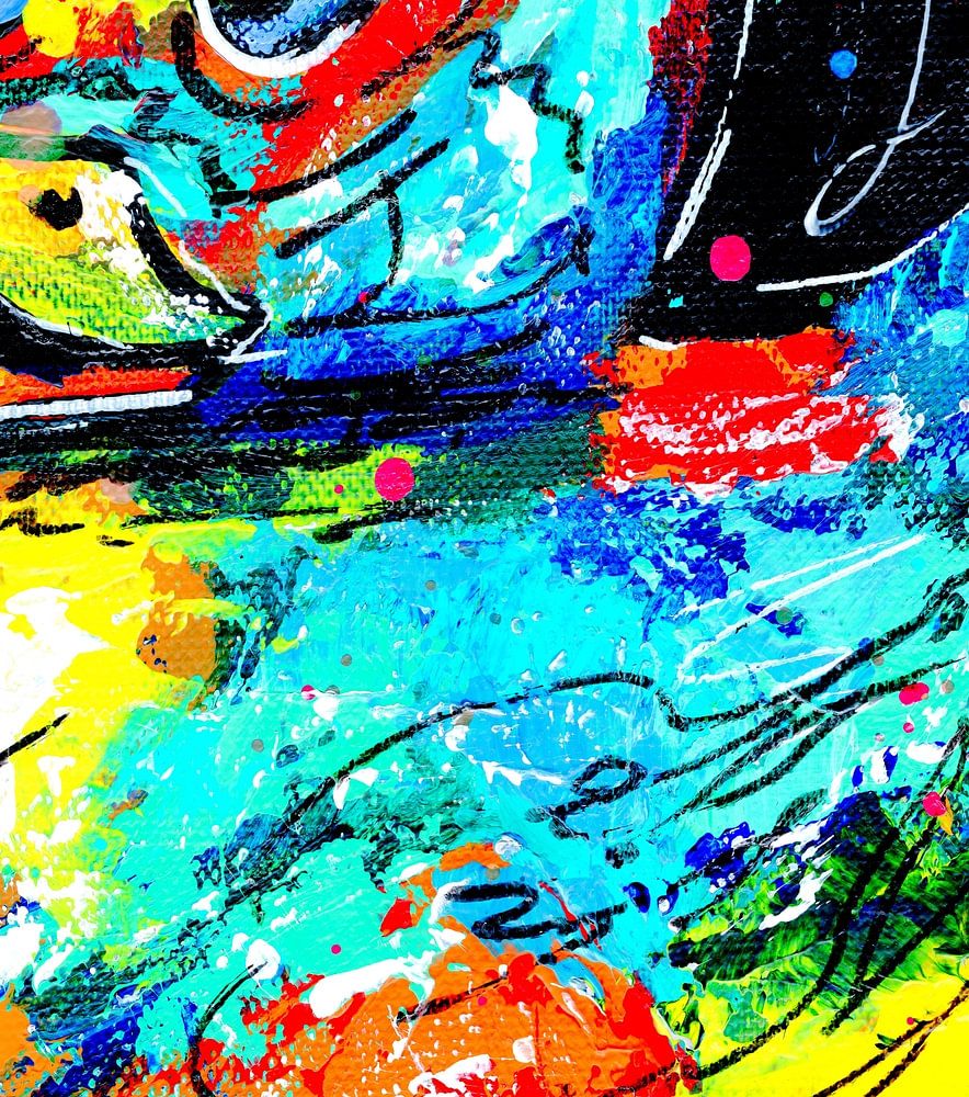 Dit kunstwerk is niet alleen een visueel feest voor de zintuigen, maar ook een bron van vreugde en positiviteit. De verf is pasteus aangebracht met een paletmes, waardoor de textuur en levendigheid van het eendje tot leven komen, als een vrolijk en levendig spel van kleur en beweging.
