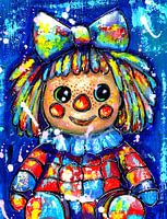 ChriPopje is een bonte persoonlijkheid vol fantasie en speelsheid. Met haar grote strik, gekleurde haren en guitige blik brengt ze een gevoel van nostalgie én vrolijke energie. De verfspatten en penseelstreken dansen over het doek – typisch ChriBu: kleurrijk, eigenzinnig en sprankelend.