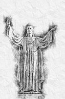 Digitale tekening, gemaakt met potlood en houtskool, van een Christusbeeld welke ik onlangs heb gezien bij de Heilige Lambertuskerk in Etten-Leur.