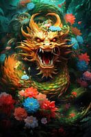 Ontdek de betoverende wereld van draken omringd door weelderige bloemen in deze fascinerende kunst die je meeneemt op een onvergetelijke reis door de verbeelding.