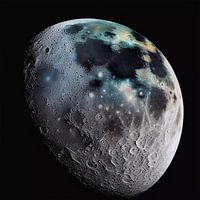 "Chromatic Crater" toont een betoverend hemellichaam dat is gekleurd in levendige tinten blauw, groen en geel. Het gestructureerde oppervlak van de planeet heeft ingewikkelde kraters en verhoogde plateaus, die tot leven komen door het opvallende contrast van licht en schaduw. Dit gedetailleerde kunstwerk legt de mysterieuze schoonheid van buitenaardse landschappen vast en is een verbluffende keuze voor decoraties met een ruimtethema, op de wetenschap geïnspireerde ontwerpen of moderne digitale kunstcollecties.