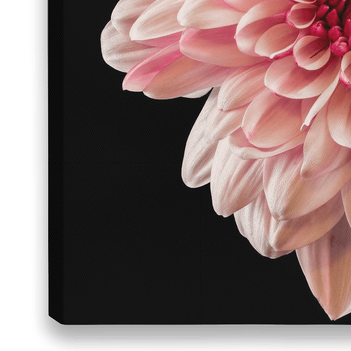 Close-up van een rose chrysant (Chrysanthemum) met een zwarte achtergrond.
