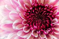 Close-up van een rose chrysant (Chrysanthemum) met een zwarte achtergrond.