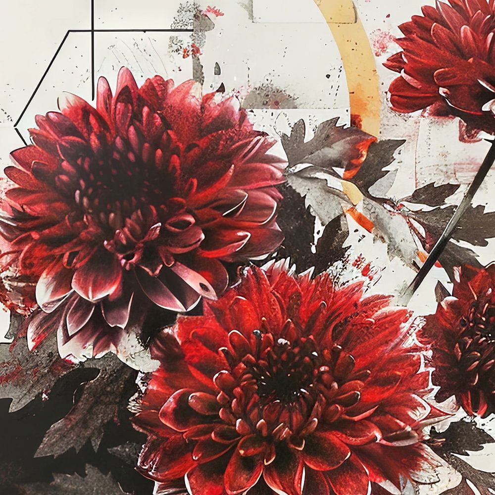 Chrysanthemum Splendour" is een kunstwerk dat de levendige en diverse schoonheid van chrysanten vastlegt. Met levendige kleuren variërend van zachtgeel tot diep bordeauxrood geeft dit schilderij een frisse en dynamische uitstraling aan elke kamer. Perfect voor woon- en werkruimtes die een vleugje frisheid en energie kunnen gebruiken. Deze muurschildering is ideaal voor mensen die hun omgeving willen verfraaien met levendige kleuren en bloemmotieven en creëert een stimulerende sfeer die uitnodigt tot creativiteit en welzijn.
