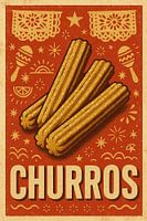 Deze verrukkelijke Churros poster viert een van Mexico's meest geliefde straatdesserts met speelse charme en vintage vakmanschap. Het kunstwerk is weergegeven in warme tinten van karamel, kaneel en rood en toont de goudkleurige knapperigheid van vers gebakken churros bestrooid met suiker, klaar om in rijke chocolade te worden gedoopt.…