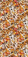 Je ziet voornamelijk de kleuren oranje, roze en wit van de filters van de sigaretten.
