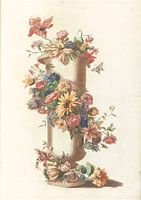 Cilindrische vaas met bloemenkrans, anoniem, 1688 - 1698