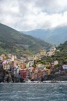 Cinque Terre, Riomaggiore, een oud dorp met kleurrijke huizen in de bergen aan de Middellandse Zeekust, beroemde toeristische bestemming in Ligurië, Italië
