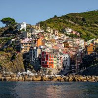 Manarola, één van de Cinque Terre dorpjes in Italië, gezien vanaf zee. Schitterend om hier vandaan een wandeling naar de andere dorpjes te maken.