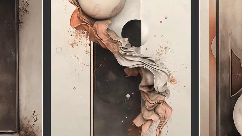 Het kleurenpalet van aardse tinten – bruin, wit en grijs – creëert een rustgevende en tijdloze sfeer. Deze natuurlijke kleuren zorgen ervoor dat het werk perfect past in uiteenlopende interieurstijlen, van modern en minimalistisch tot Japandi en Scandinavisch. De combinatie van organische rondingen en strakke lijnen vormt een visuele balans die zowel kracht als subtiliteit uitstraalt.