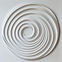 Modern abstracte afbeelding van fibonacci cirkels op een strakwitte achtergrond. Prachtige organische vormen in een driedimensionale samenstelling creëren een bijzonder boeiend schouwspel. Passend bij diverse stijlen en trends, waaronder abstract, modern abstract, wit, verbinding. Artist: Bianca ter Riet
