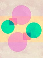 Abstract minimalistische kunst met verschillende ronde en vierkante vormen en zachte kleuren geel, roze en groen. Tijdloos modern en trendy design.