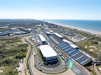 Circuit Zandvoort luchtfoto tijdens de voorbereidingen voor de Formule 1 Grand Prix van Nederland in de duinen aan de Noordzeekust in Nederland. Het 4,259 km lange circuit keert in 2021 terug op de F1-kalender als locatie voor de nieuw leven ingeblazen Grand Prix van Nederland en andere evenementen zoals DTM, F3, Historic Grand Prix en Historic Grand Prix en ADAC GT Masters.