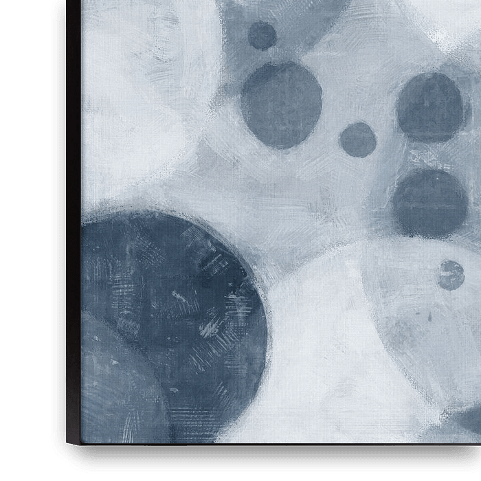 In deze blauwe versie van ‘Cirkelgedachte’ lijken de cirkels als in een zachte, kabbelende waterstroom met elkaar te versmelten. De schakeringen in blauw zorgen voor een kalme, dromerige uitstraling die de aandacht trekt zonder te overheersen.