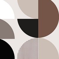 Moderne, simplistische abstracte kunst met cirkels, rechthoeken en rondjes. Zand / chocolade kleuren.