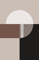 Moderne, simplistische abstracte kunst met cirkels, rechthoeken en rondjes. Zand / chocolade kleuren.