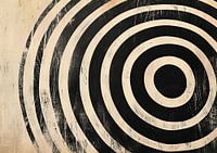 Cirkels | Cirkels - Een intrigerende doordringendheid kenmerkt dit stuk, met zijn concentrische cirkels in zwart en beige die een dynamische beweging suggereren. De textuur draagt bij aan een ruwe, bijna industriële charme, terwijl de subtiele verweerde look een gevoel van geschiedenis toevoegt.