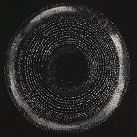 Dit kunstwerk straalt de essentie van Japandi-stijl uit, met zijn minimalistische en elegante uitstraling. De cirkelvormige patronen op de donkere achtergrond symboliseren de oneindigheid en het universum, terwijl de organische, onvolmaakte stippen de Wabi-Sabi-filosofie weerspiegelen. Het werk nodigt uit tot een gevoel van rust en sereniteit, perfect passend in een interieur dat eenvoud en harmonie omarmt. De subtiele onregelmatigheden in het patroon benadrukken de schoonheid van imperfectie, waardoor het een krachtig visueel statement maakt.