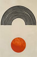 Dit indrukwekkende kunstwerk combineert eenvoudige geometrische vormen met krachtige kleuren en heldere lijnen. De centrale rode bol wordt omlijst door gebogen zwarte lijnen, waardoor een harmonieus evenwicht ontstaat tussen structuur en vrijheid. Dit schilderij is perfect voor moderne interieurs, trekt de aandacht en geeft elke kamer…