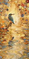 "Cirkels van Natuur" toont een sierlijke ijsvogel te midden van een gouden waterlandschap, verlevendigd door een mozaïek van cirkelvormige patronen. De warme gouden en amberkleurige tinten van het water creëren een rustige achtergrond voor de opvallend blauworanje veren van de vogel. Dit tafereel straalt een gevoel van sereniteit en focus uit, met de ijsvogel als stille waarnemer van zijn omgeving. Het gebruik van cirkels kan gezien worden als een metafoor voor de cycli van de natuur en het leven. De reflectie van de vogel op het wateroppervlak versterkt de verbinding tussen het dier en zijn leefomgeving. Deze afbeelding past naadloos in een modern interieur waar een element van natuurlijke rust en een vleugje kleur gewenst is.