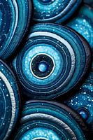 Cirkels van Verwondering is een hypnotiserend ontwerp dat direct de aandacht trekt. De dynamische samenstelling van overlappende cirkels met een rijk spectrum van blauwe tinten, variërend van diep marine tot helder turquoise, creëert een levendig en toch rustgevend beeld. De subtiele textuur binnen elke cirkel voegt een tastbare diepte toe, terwijl de perfecte balans tussen kleur en vorm een gevoel van harmonie en moderniteit uitstraalt. Ideaal voor de moderne woonkamer of een stijlvol kantoor, dit ontwerp nodigt uit tot contemplatie en biedt een ontsnapping aan de drukte van het dagelijks leven. Elk stuk is uniek en voegt een vleugje abstracte kunst en kleur toe aan uw ruimte.