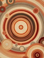 Een hypnotisch abstract werk opgebouwd uit concentrische cirkels in aardse tinten van roest, oker en zand. De handgetekende lijnen creëren beweging en diepte, alsof warmte zich in golven door het beeld verspreidt. Circles of Warmth brengt energie en zachtheid samen en vormt een harmonieus middelpunt in elk modern interieur.