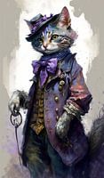 Aquarel fantasie portret van een kat als ringmeester in het circus.