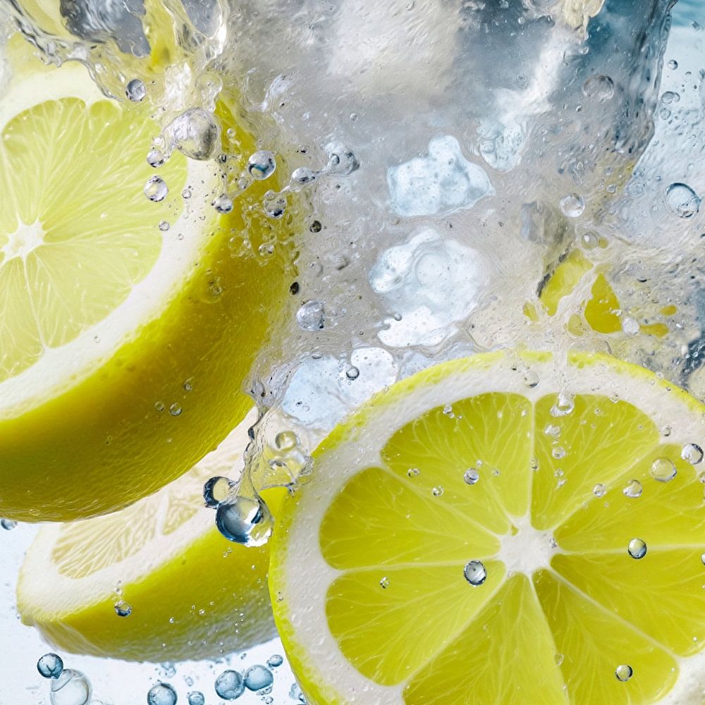 Dit dynamische beeld legt het moment vast waarop sappige citroenschijfjes in verfrissend water vallen. De levendige kleuren en de beweging van het water creëren een gevoel van energie en vitaliteit. De gedetailleerde weergave van de waterfonteinen en luchtbellen geeft de afbeelding een speciale diepte.