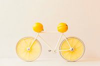 Er staat ons een speels fris ritje te wachten! De felgele wielen van citrusvruchten geven deze creatieve fiets een vrolijke, zomerse flair. De delicate witte structuur doet denken aan lichtheid en luchthartigheid, terwijl de combinatie van fruitige rondingen en minimalistische vormen een inspirerende, zoete algehele look creëert. Een genot voor de verbeelding!