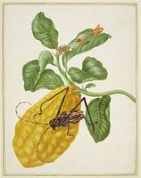 Citroen met een apenslakmot en een harlekijnkever, Maria Sibylla Merian (1703)