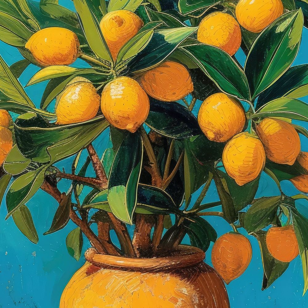 Verfraai je kamer met de levendige schoonheid van mijn Citroenboom citroen kunstwerk. Elke penseelstreek vangt de smaak van zonovergoten citroenen tegen weelderig gebladerte. Een verfrissende uitbarsting van de natuur, dit werk brengt een citrusachtige charme in je omgeving - een tijdloze toevoeging aan je kunstcollectie.