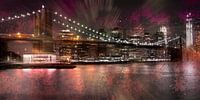 Het zuidelijke deel van New York City met de Brooklyn Bridge op de voorgrond Skyline. De lichten van de stad weerspiegeld in de East River. Met een modern en abstract versie.