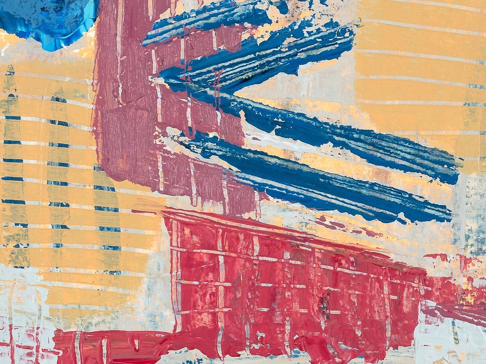 Het schilderij ‘City Blocks’ is een abstract stadslandschap opgebouwd uit ritmische lijnen, kleurvlakken en patronen. De compositie roept de sfeer op van een stedelijke omgeving. Het is een doorkijk van structuren, gevels en plattegronden. De kleuren rood, geel en blauw zorgen voor een krachtig contrast en geven het werk een grafische uitstraling. Een stadsbeeld in beweging, opgebouwd uit een spel van vormen.