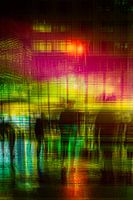 Deze avond foto is gemaakt in Rotterdam en opgebouwd uit meerdere beelden met verschillende belichtings tijden waardoor er beweging en dynamiek ontstaat. Door het opbouwen van de lagen ontstaat er mooie mening van het licht. Door de regen ontstaat er ook weer een prachtige reflectie op de straat.