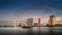 Koop de Rotterdam foto Cityscape van Rotterdam in de avond met gebouwen en boot op de voorgrond. van Bart Ros op canvas, aluminium dibond, (ingelijste) fotoprint, behang en ArtFrame, op maat geprint in Fine-Art kwaliteit.