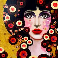 ClImPnRIt is een prachtig schilderij van een vrouw met enigmatische ogen, muzikaal omgeven door retro grammofoonplaten. Het zal al uw gasten in ontzag doen fluisteren: "Wie is dit betoverende schepsel dat zoveel ziel heeft?". Art Deco. A la Gustav Klimt.