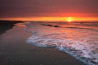 Mooie kleurrijke klassieke plaat van een klassieke zonsondergang op het Noordzeestrand van Terschelling. Door te kiezen voor een iets langere sluitertijd ontstaat er wat beweging in het zeewater op de voorgrond.