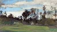 Koop Claude Monet,De weide omzoomd met bomen als reproductie geprint op canvas, aluminium dibond, (ingelijste) fotoprint, behang en ArtFrame. Voor jou op maat geprint in Fine-Art kwaliteit.