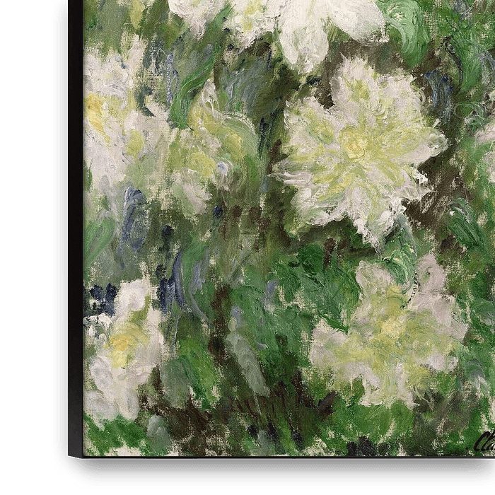 Koop Claude Monet,Witte Clematis als reproductie geprint op canvas, aluminium dibond, (ingelijste) fotoprint, behang en ArtFrame. Voor jou op maat geprint in Fine-Art kwaliteit.