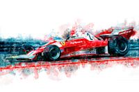 Illustratie van een serie legendarische Formule 1-racers en hun coureurs. Ontworpen uit liefde voor het klassieke racen. Geschilderd met aquarellen op papier.