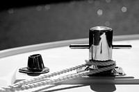 A close up photograph showing a cleat securing a rope to hold the boat ashore.