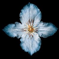 Eine Clematis in Form eines Kreuzes in hellblau.