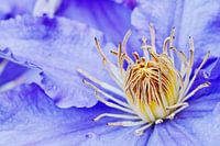 Het hart van de clematis, een bloeiende klimplant.